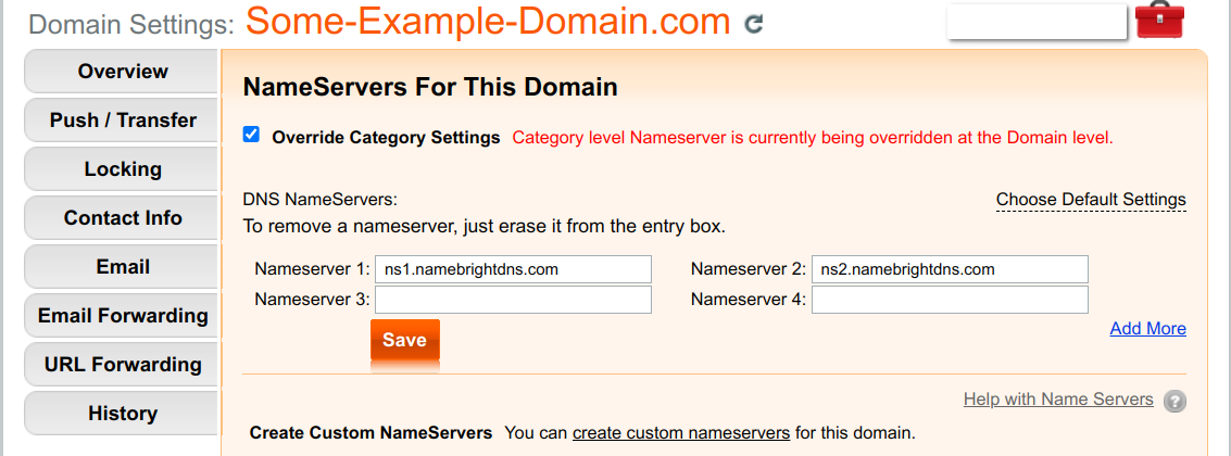 Into the field Nameserver 1: NS1.NAMEBRIGHTDNS.COM